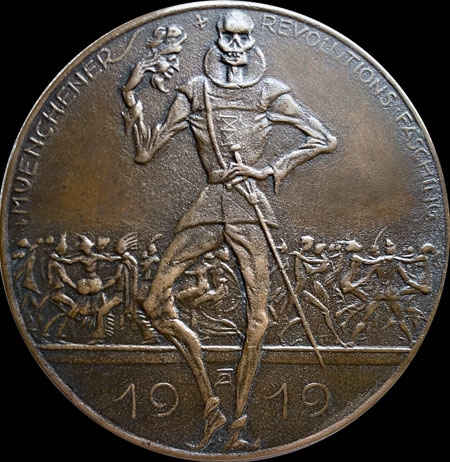 It is thus easy to understand this medal's imagery, even if the revelries portrayed bear little resemblance to reality that year.  Zadikow's presence in Munich at the time is also uncertain.  Conscripted in 1915, he was severely wounded and taken prisoner in 1917 and not repatriated from Britain until 1919.  Though he did return to his family in Munich, his arrival date is unrecorded so far as I know.