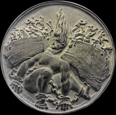 Gies' medals are not the only subjects of such forgeries. I have seen three other zinc-tin copies of designs from the work of other Munich medallists: one by Maximilian Dasio, one by Bernhard Bleeker, and one by Hermann Hahn. In short, I would recommend collectors be suspicious of any zinc-tin cast of designs other than those signed by Rudolf Schmidt.