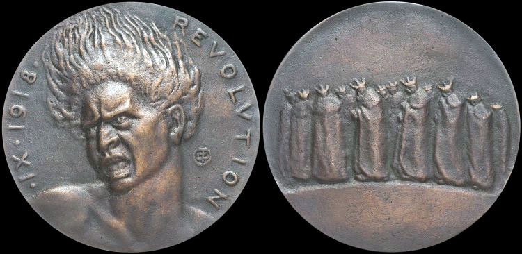・IX ・ 1918・ —— REVOLVTION (September 1918 - revolution). Cast bronze, medium-brown patina, 66.2 mm, 84.62 g. Fast gußfrisch (near as-cast). Rare.