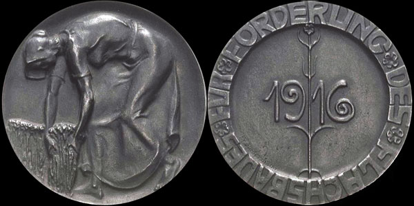 Following Italy's alliance with the Triple Entente in 1915, raw cotton imports to the German textile industry ceased, and the country attempted, never entirely successfully, to make up shortages by increasing production of hemp and flax. With most able-bodied men at the front, much agricultural work fell to women. Based on the medal's legend, one assumes it to have been an award, but I have thus far been unable to discover either criteria for its bestowal or any published references to the medal itself.